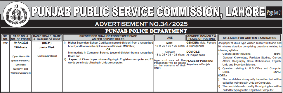 • ایڈورٹائزمنٹ نمبر: 34/2025